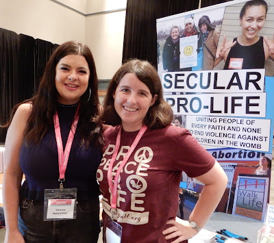 At the Secular Pro-Life exhibit booth, we recruited over 60 volunteers for the launch of a new project (stay tuned!) and had countless delightful conversations. One Catholic woman told us that her favorite response to the "keep your rosaries off my ovaries" nonsense is to say "Ewwww, I don't want to get my rosaries dirty!" I can't recommend that as part of a productive dialogue, but I appreciated her sense of humor!