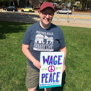 After Walter's talk the conference stopped for lunch. Everyone stretched their legs and walked out to a beautiful warm day. We grabbed our sunglasses and sandwiches, chips, and cookies (included with the conference tickets) and Ellen and I continued tabling for Secular Pro-Life. Many attendees came up to congratulate us on SPL's talk, which they enjoyed very much, and to get copies of our 5 page source list. Several of the attendees said they appreciated the analytical approach, and shared that they too had backgrounds in STEM and so were partial to a more data-centered discussion. I'm always pretty happy to meet other STEM pro-lifers. It may be the first conference Ellen or I have attended where we talked a lot more about the research and not as much about religious diversity, although there were several of those discussions too. Either way everyone was friendly and encouraging, and we ended up giving away all but one of our copies of the source list. There was a lot of interest, which was pretty great.